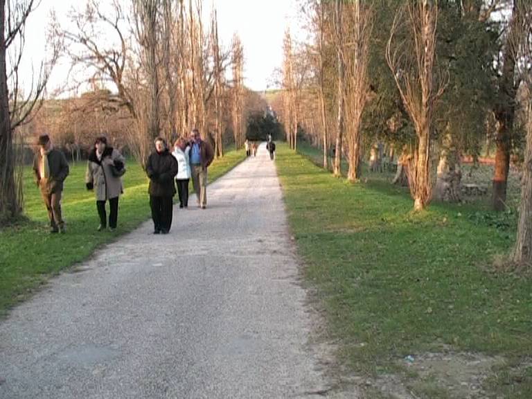 Il percorso inizia lungo il viale di fronte alla Chiesa fino a raggiungere uno scivolo; da qui ci si immette nel viale alberato che porta all’itinerario naturalistico. Proseguendo si raggiunge il piccolo anello che si inoltra in un bosco.