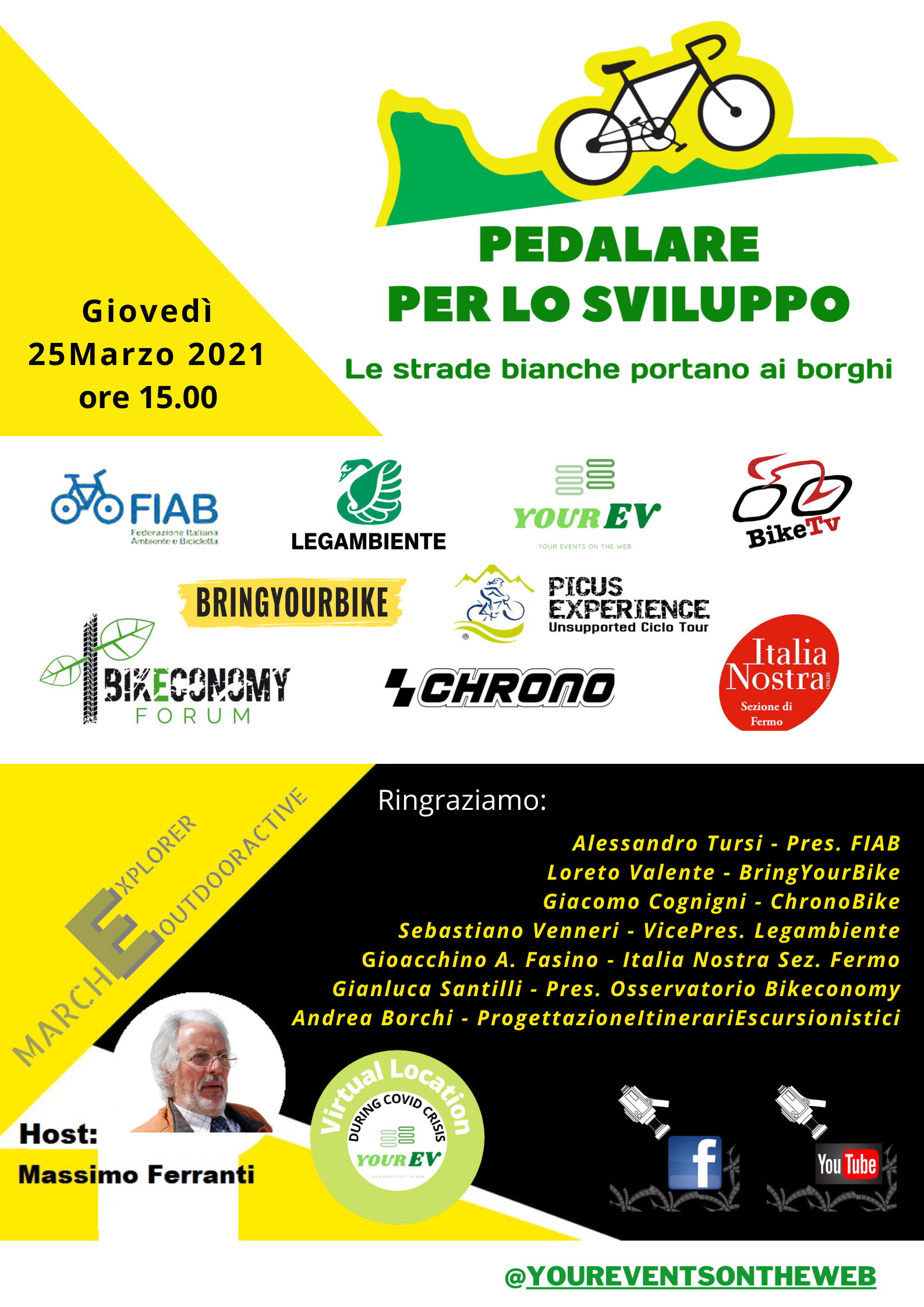 Avrà luogo Giovedì 25 Marzo 2021 dalle ore 15.00, a cura di MarcheExplorer, la riedizione aggiornata della presentazione "Pedalare per lo sviluppo - le strade bianche portano ai borghi" già proposta in convegno in presenza nel Luglio 2019.